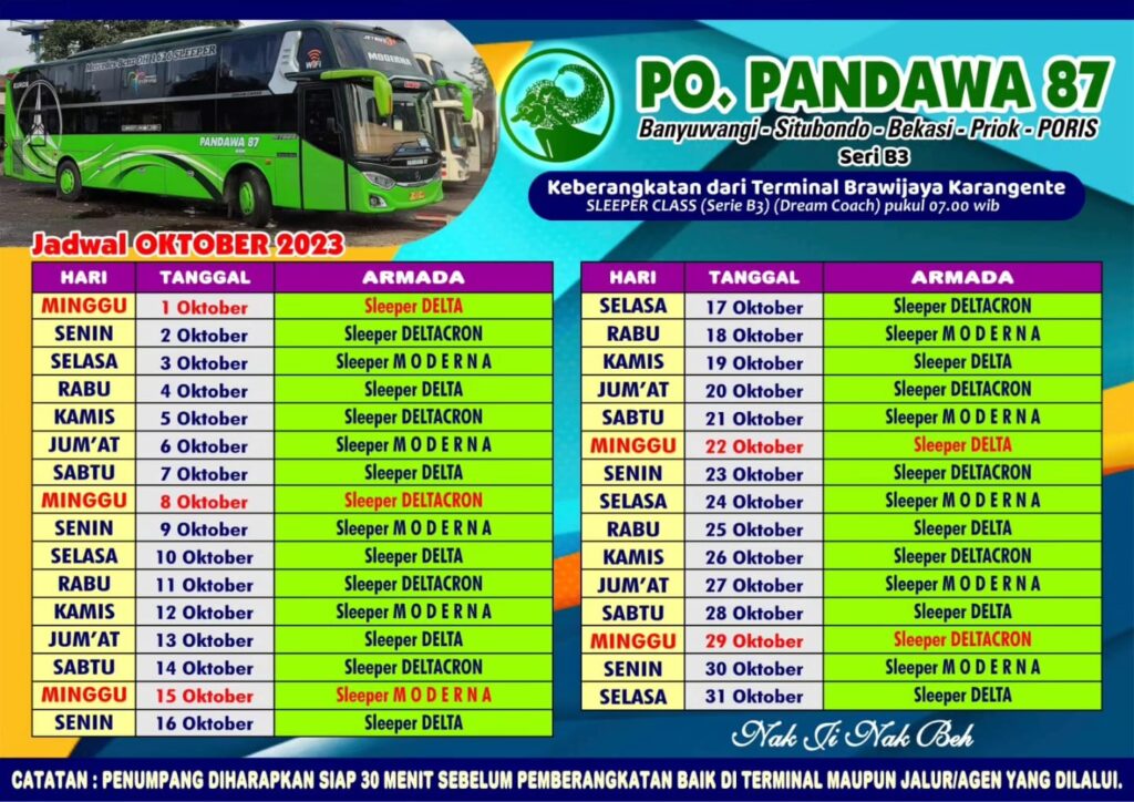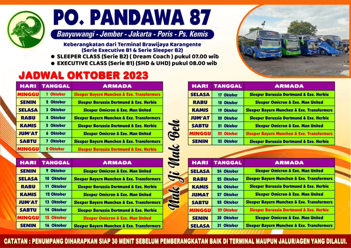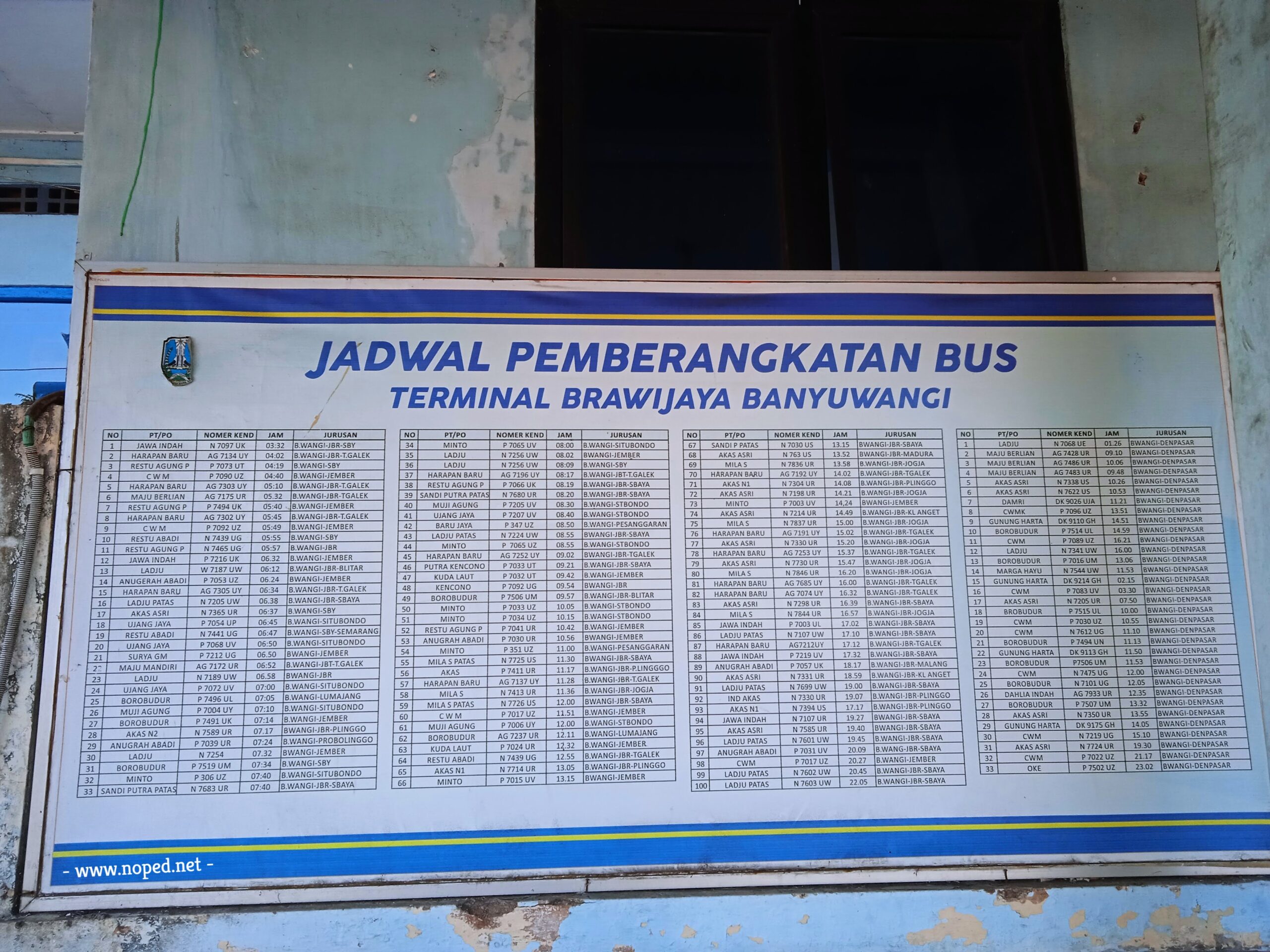 Jadwal Keberangkatan dari Banyuwangi, Terminal Karangente :