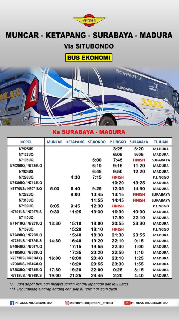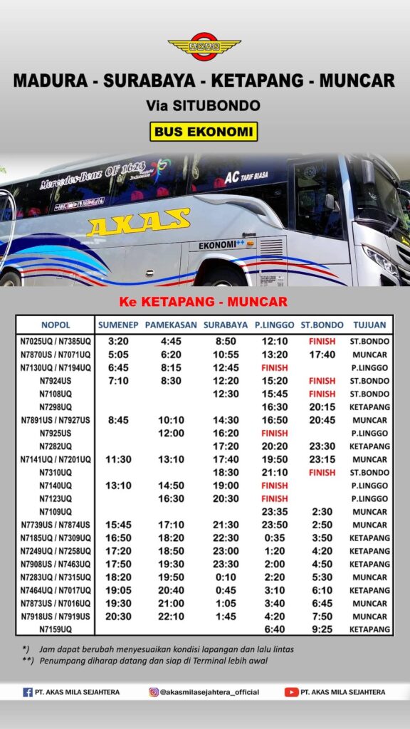 Muncar 9.30 Informasi kontak kru : ▪︎ Kondektur : 0852 5894 6322 ▪︎ Driver : 0813 8473 8559