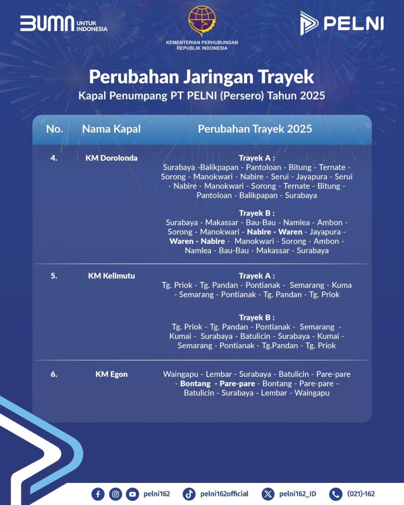 Pada Tahun 2025 ada Perubahan Jaringan Trayek pada Kapal Penumpang PELNI.