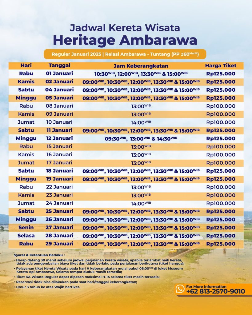 Jadwal KA Wisata Ambarawa Reguler bulan Januari 2025